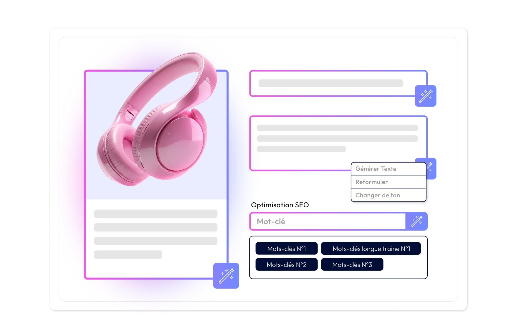 Générer automatiquement des descriptions produit complètes et convaincantes.