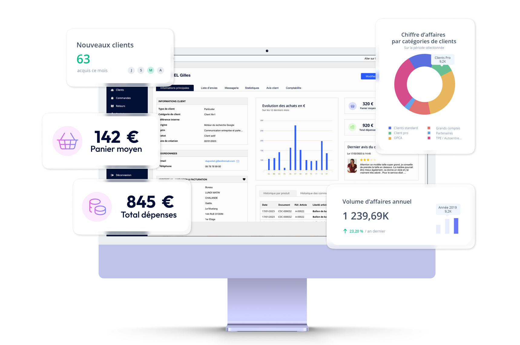 Suivez vos performances en temps réel grâce à des tableaux de bord personnalisables. Identifiez vos meilleures ventes, vos clients les plus fidèles et vos leviers de croissance.