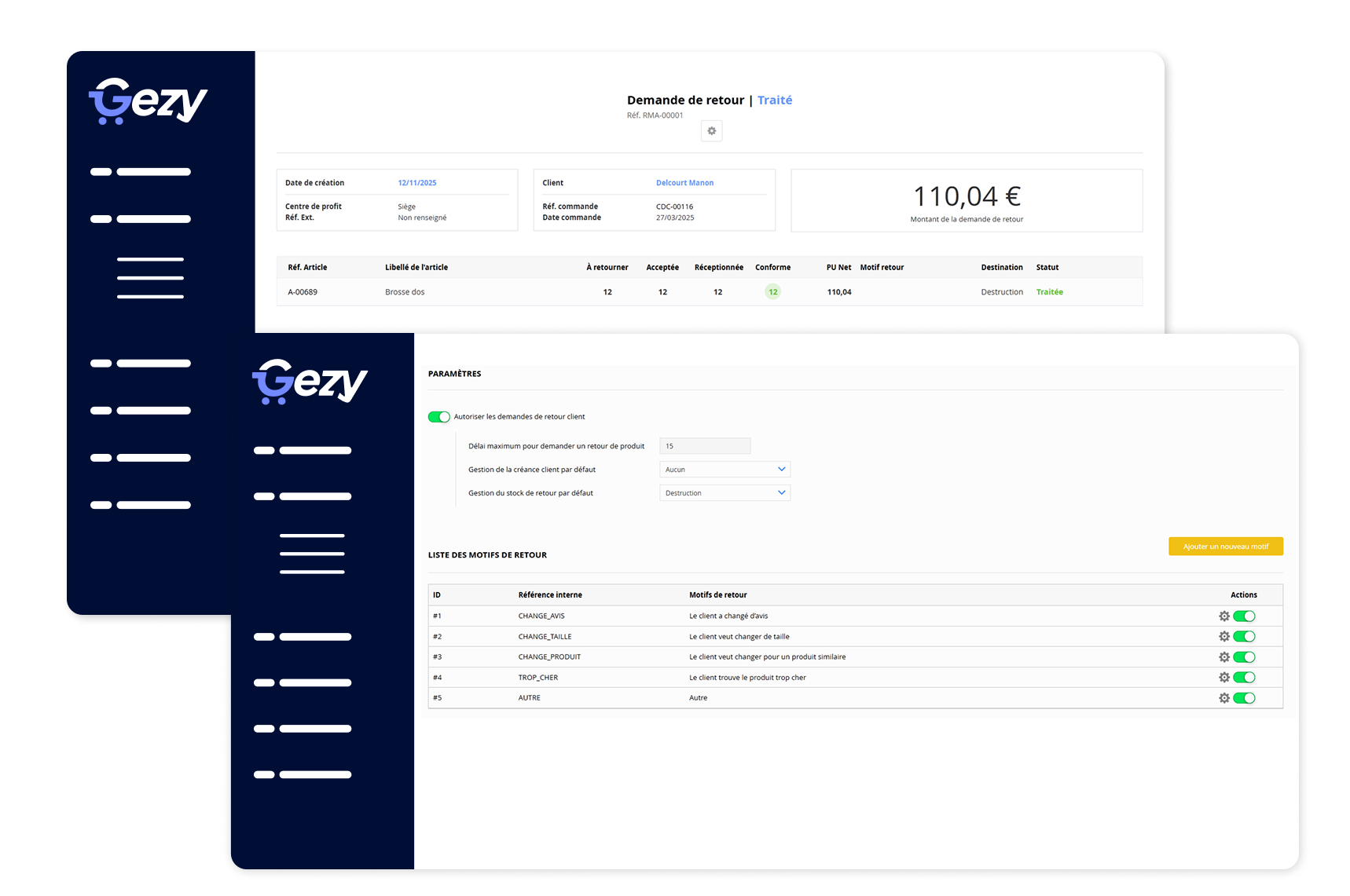 Oui. Gezy simplifie les retours, remboursements et échanges, en automatisant les étapes et en tenant le client informé tout au long du processus.
