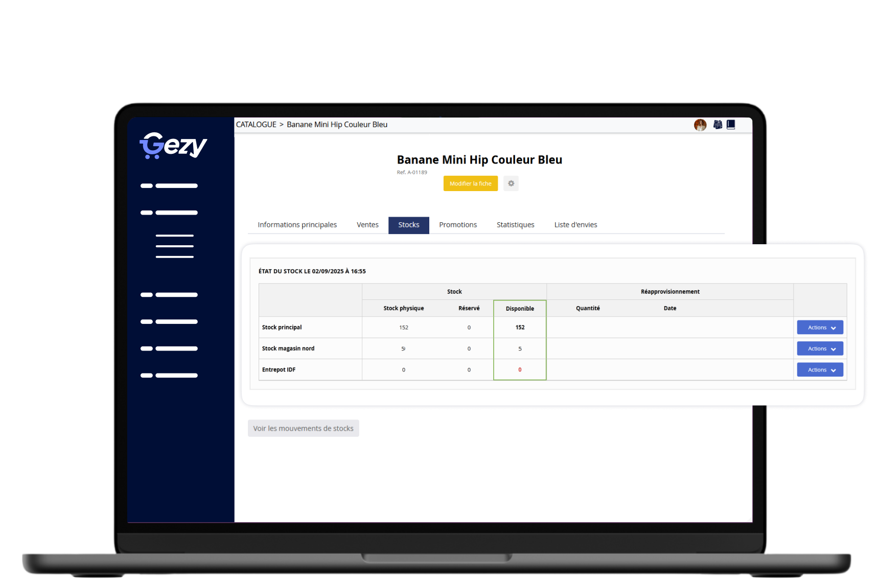 Oui, Gezy met à jour vos stocks en temps réel à chaque commande.
